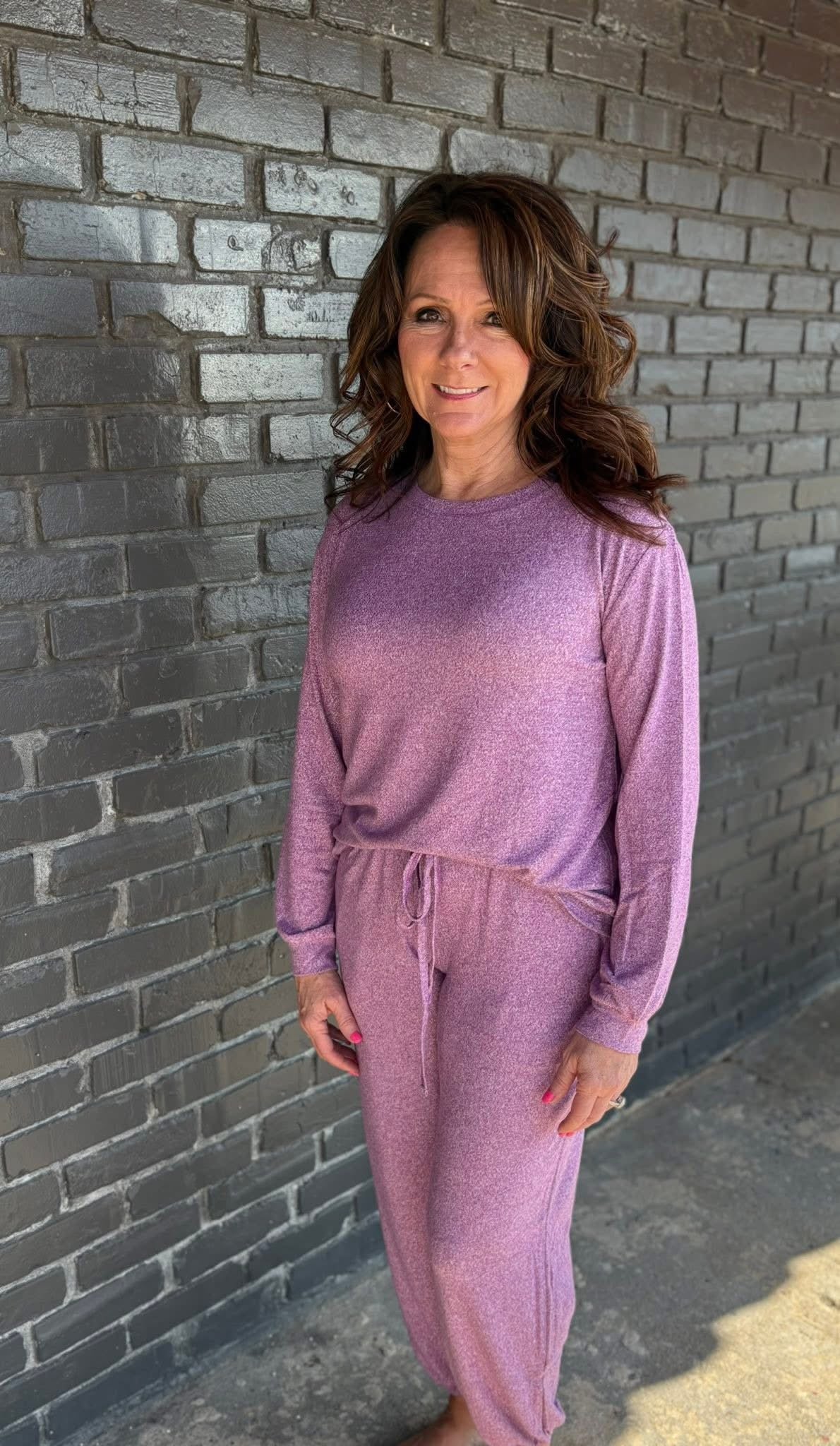 I could just live in this new “Baby Soft” 2 pc set from Zenana! Ultra soft & comfy! Pretty heathered plum color! Top is cute tucked or out! Pull on joggers are great for ladies who need a shorter length bottom! Available in small-large. Small shown here.