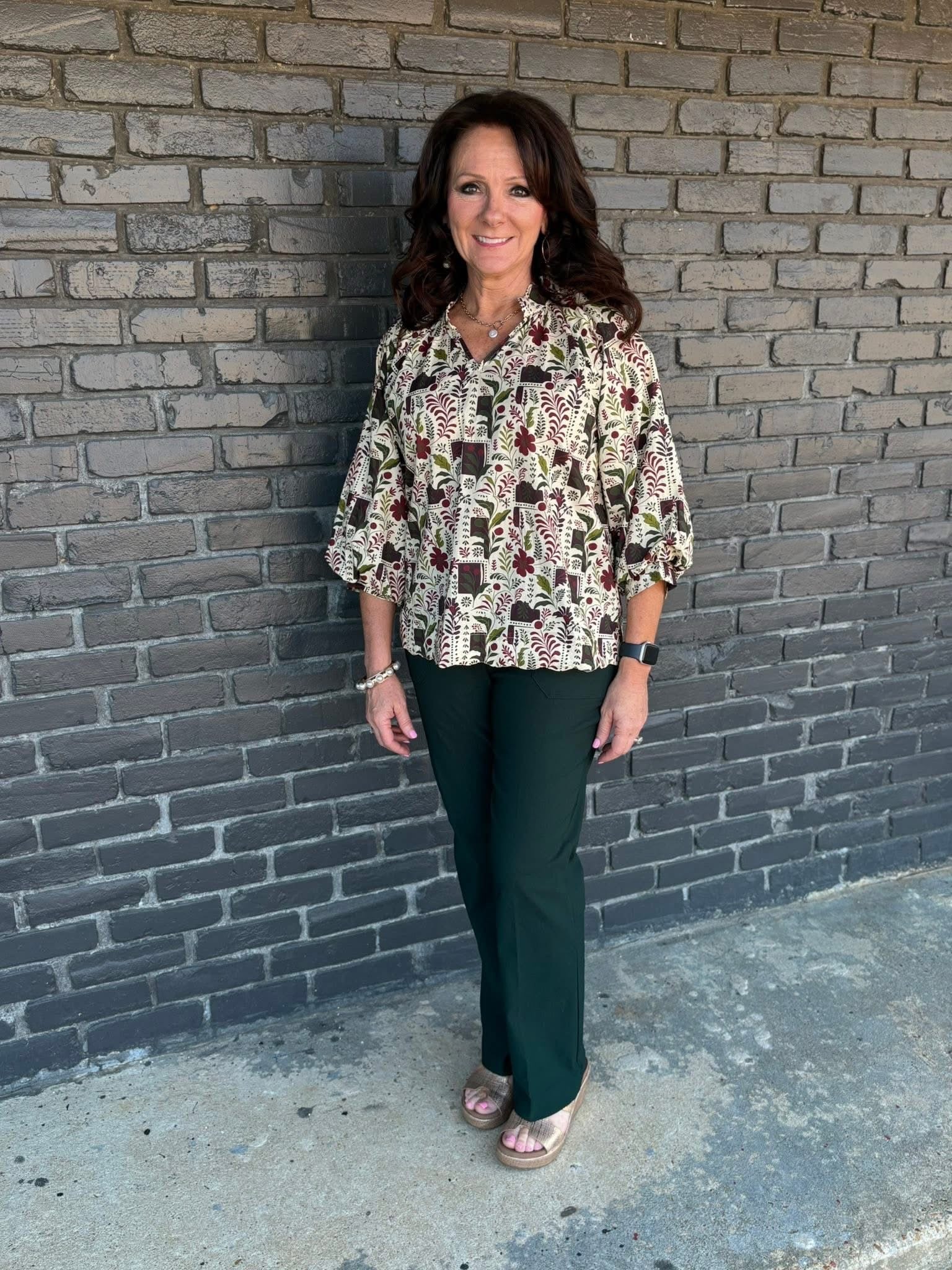This great fitting, fabulous feeling pull on pant by Counterparts is a perfect fall wardrobe staple! Comfortable 2” waistband. Cute front side pockets. Smooth back. Straight leg. Available in two great colors for fall: hunter green and charcoal gray. Small-XL. True fit. Medium shown here. Medium measures 39” waist to hem.