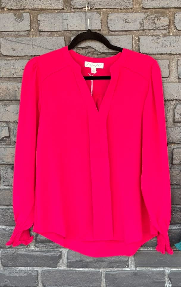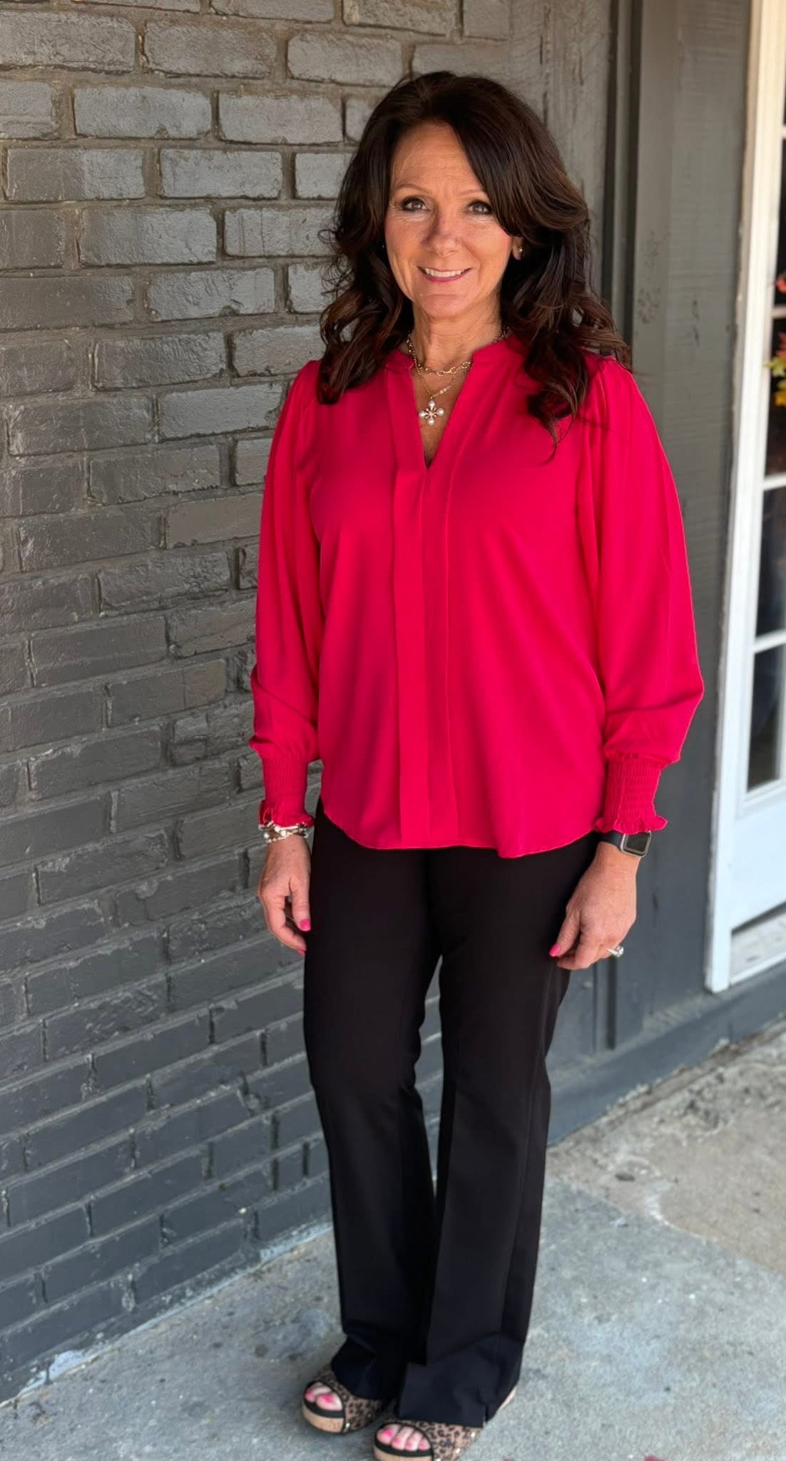 Just in! Our popular “Go To Top” by She & Sky is back for fall in cherry & pine! A perfect top for every day wear! Casual or dressed up! Lightweight fabric! Simple design! Available in small-large and XL-2X! Small shown here. Medium measures 24” shoulder to hem. 1X measures 27”.