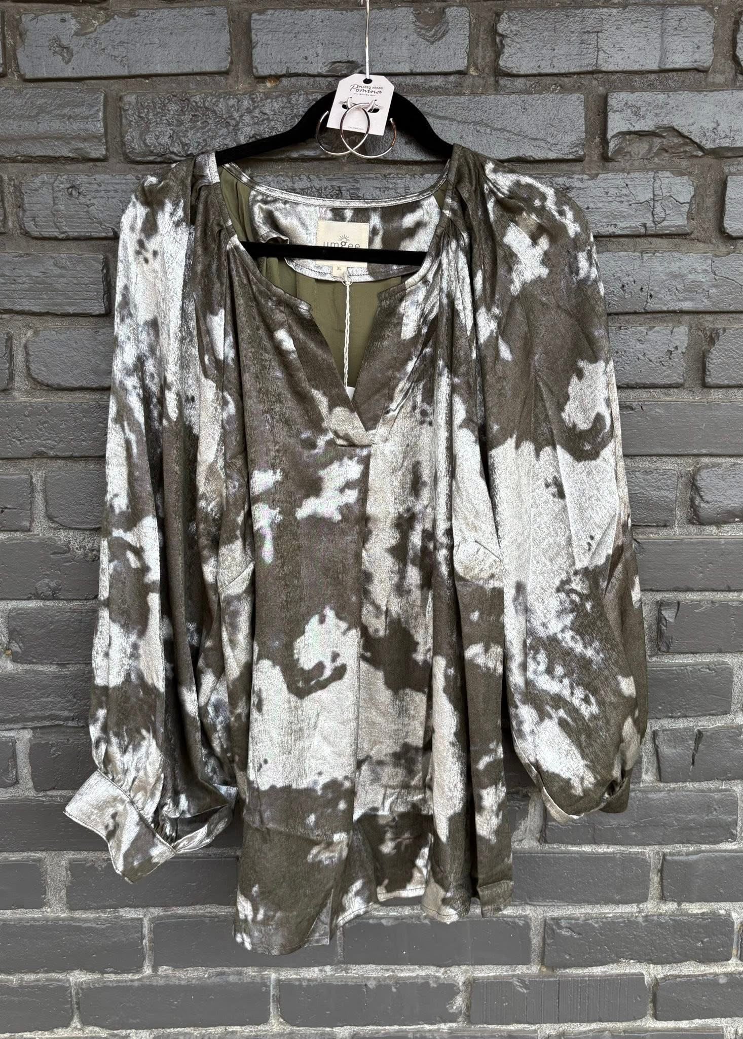 Just in! And, just in time to celebrate the season! Our glitzy Holiday top by Umgee is available in metallic gold & black and metallic silver & cedar! Slight v-neck! Pretty rounded hem! Perfect with leggings or slacks! XL-2X, $44. May be purchased in store now and on our website!
