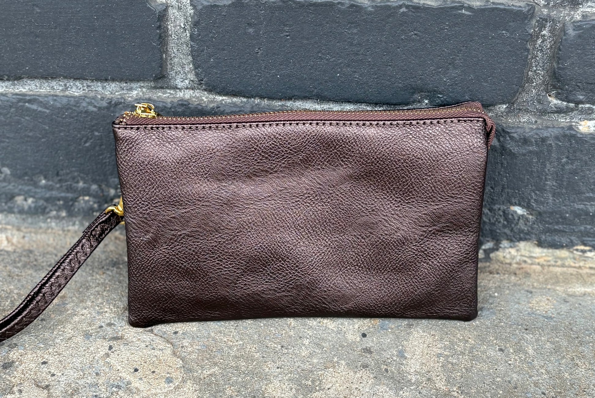 Our favorite 3 compartment wallet / crossbody purse. Room for your money, cards, and much more! So expandable. Measures 8” x 5”. Wristlet and long adjustable straps included. Perfect for monogramming.