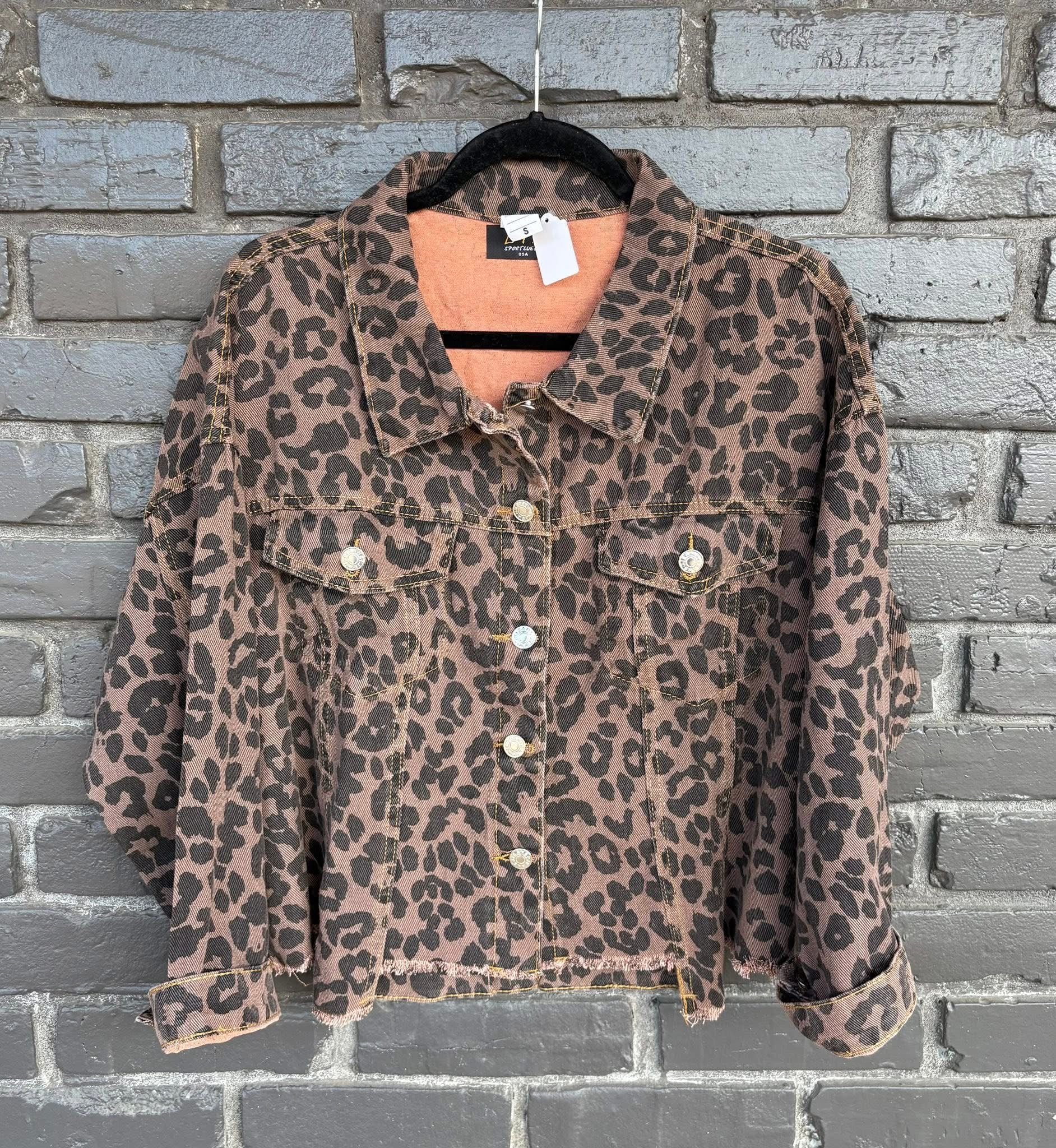 Just in! Our fun little LTX Sassy denim jacket is a must have for our ladies who love leopard! Soft, lightweight denim that moves with you! Double front pockets! Stylish hip length! Love the frayed hem detail! May be worn buttoned or open! Small-XL, somewhat boxy fit! $52. Available in store & on our website!