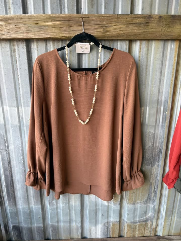 Just in! Our Fabulous “Solid Choice Plus” top by LTX is available in three beautiful fall colors: cocoa, cinnamon, and olive! Lightweight, easy care airflow fabric! Long sleeves. Keyhole back. Perfect dressed up or worn casual. Sizes 1X-3X. $45. May be purchased in store now and on our website