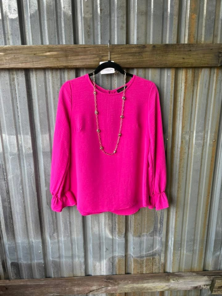 Just in! Our fabulous “Solid Choice” top by LTX! Lightweight, easy care airflow fabric! Three bright beautiful solids: hot pink, royal, and tangerine! Long sleeves! Keyhole back. Perfect dressed up or worn more casual! Small-large. $45. May be purchased in store now and on our website